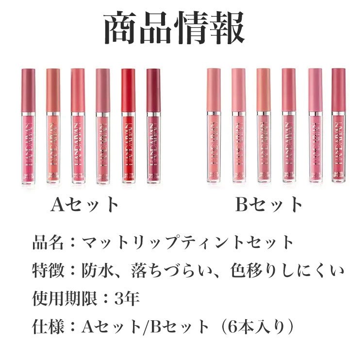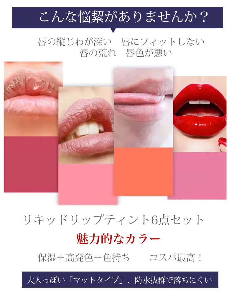 【マットカラーリップティントセット】保湿力も抜群で潤い唇に!大人っぽい「マットタイプ」、防水抜群で落ちにくい
